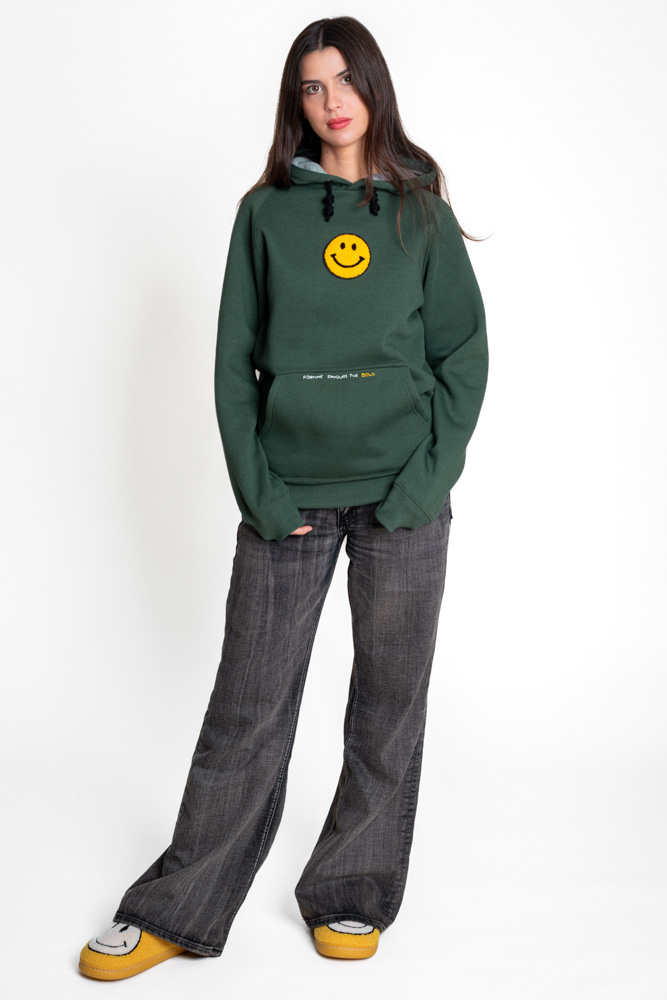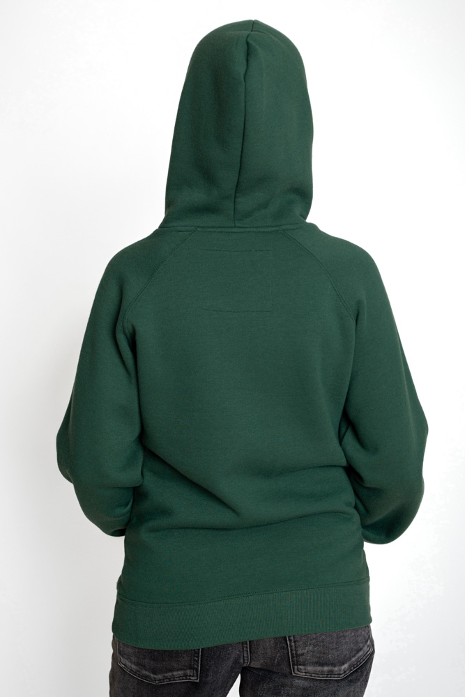 On the photo, the girl is wearing the size M sweatshirt.